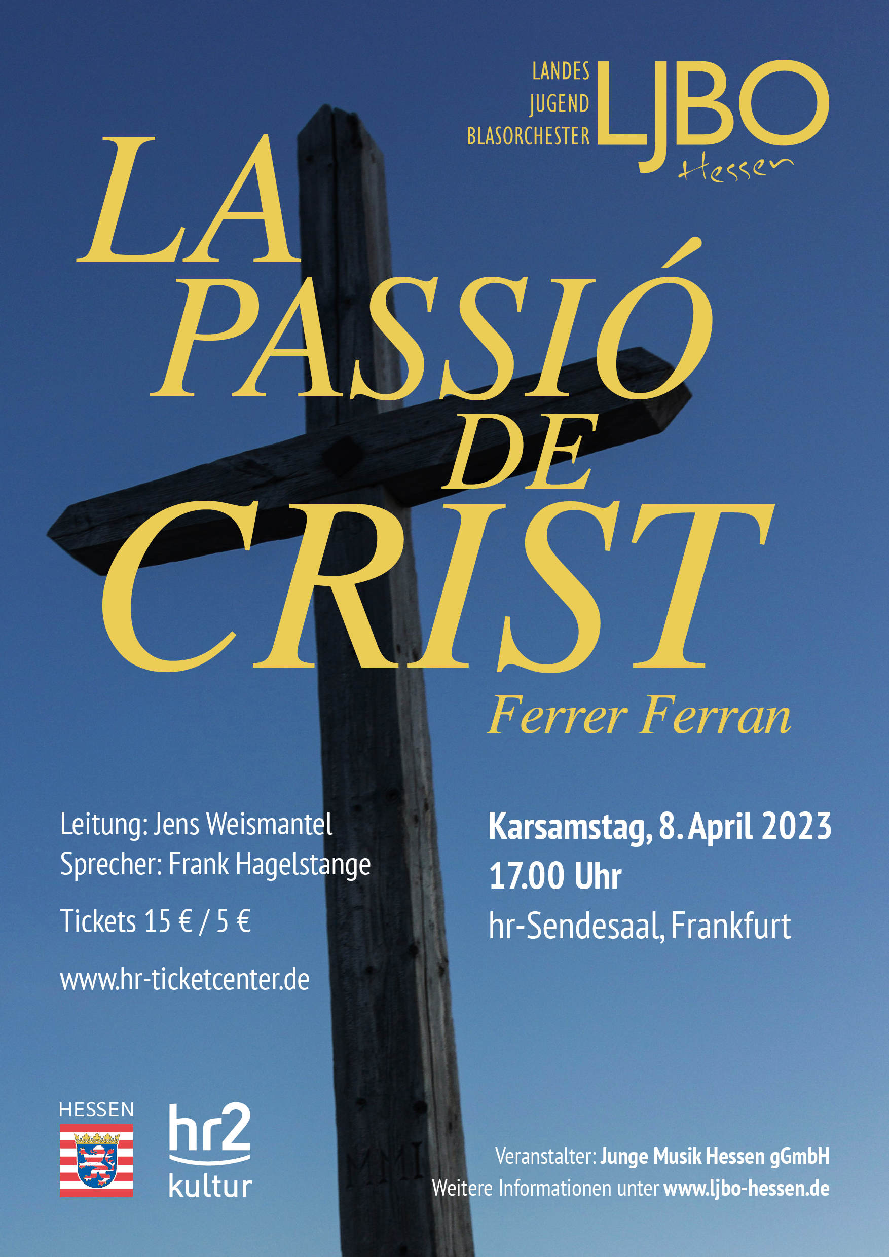 KonzertplakatProgrammMartin Luther (arr. Jacob de Haan)Aus tiefer Not schrei ich zu dirFerrer FerranSinfonie Nr. 2 „La Passió de Crist“Anton Bruckner (arr. Otto Wimmer)Vexilla Regis Hymnus- ProgrammJan van der RoostEt in Terra PaxEdward GregsonTuba ConcertoJohn MackeySheltering SkyJoseph HorovitzBacchus on Blue RidgeKenneth HeskethDanceries